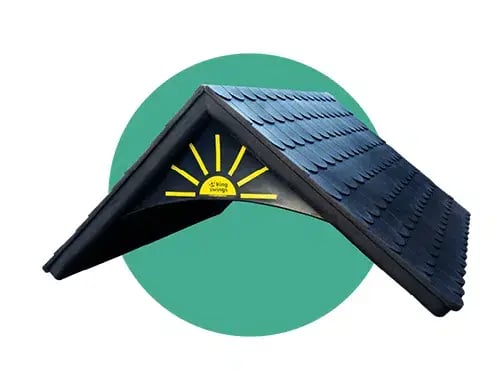 The new lean-to roof is a modern upgrade on our playhouse roofs. It is made from a base layer of poly boards and then sheeting on top of the roof. It is beautiful to the eye and can be seen on the Homestead.
